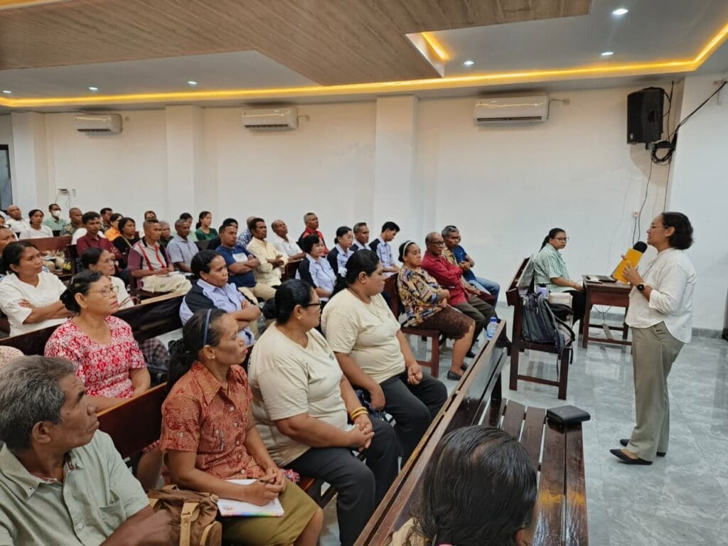 Sementara itu, para Koster mengikuti kelas materi Tata Ibadah, yang dibawakan oleh Pdt. Bethseba J. Fanggidae–Nunuhitu, M.Th. Melalui materi ini, para koster dibekali pemahaman tentang peran penting mereka dalam mendukung kelancaran liturgi dan suasana peribadahan di jemaat masing-masing. Selain itu, sesi khusus “Mendengar Ungkapan Hati Koster” dipimpin oleh Pdt. Emr. Hendrik A. Abineno, Sm.Th, M.Pdk, sebagai ruang dialog terbuka bagi para koster untuk menyampaikan pengalaman, tantangan, serta kebutuhan dalam tugas pelayanan mereka.