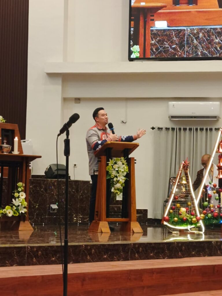 Ibadah Natal Klasis Kota Kupang dipimpin oleh Ketua Sinode GMIT (Pdt. Samuel Benyamin Pandie, S.Th), yang menyampaikan renungan Natal sekaligus Suara Gembala. Melalui pesan firman tersebut, jemaat diteguhkan untuk menghayati makna Natal sebagai panggilan untuk bersaksi tentang kesetiaan Allah di tengah dunia yang sedang mengalami luka, serta menghadirkan kasih Kristus secara nyata dalam kehidupan bergereja dan bermasyarakat.