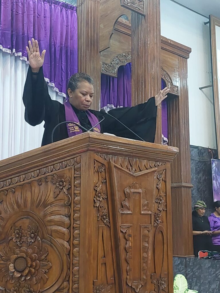 Dalam khotbahnya, Pdt. Delviana menyampaikan bahwa ibadah ini hadir dalam dua momen penting dalam kehidupan gereja, yaitu dalam masa Minggu Sengsara sekaligus perayaan Hari Doa Sedunia yang tahun ini mengajak umat percaya untuk belajar dari kehidupan perempuan Nigeria.