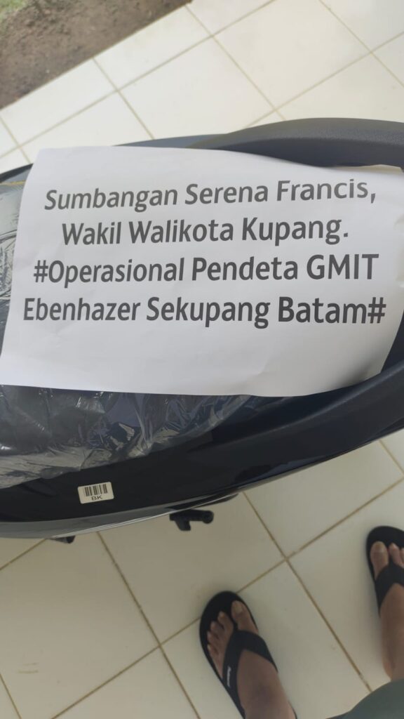 KUPANG — Jemaat Bermata Jemaat Ebenhaezer Sekupang, Klasis Kota Kupang, menerima bantuan 1 (satu) unit sepeda motor dari Wakil Wali Kota Kupang, Serena Cosgrova Francis, S.Sos., M.Sc. Bantuan ini diberikan sebagai bentuk kepedulian dan dukungan terhadap pelayanan gereja, khususnya dalam menunjang mobilitas pelayanan di tengah jemaat.